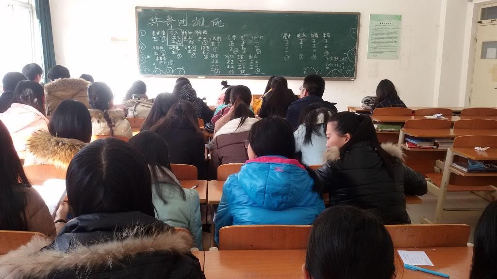 首先,团支书李媛媛向大家讲解了入党积极分子的参选条件以及大家参选和投票的流程,随后,由班长路其森唱票,李媛媛监票,迟颖、王潭潭和张悦在黑板写票。经大家的选举后,本次评选出的积极分子有刘双双和张雪。此次班会旨在评选入党积极分子,同时也为加强班级团学、党建工作,创建优良学风,充分发挥争先创优在同学学习与成长过程中的激励作用。