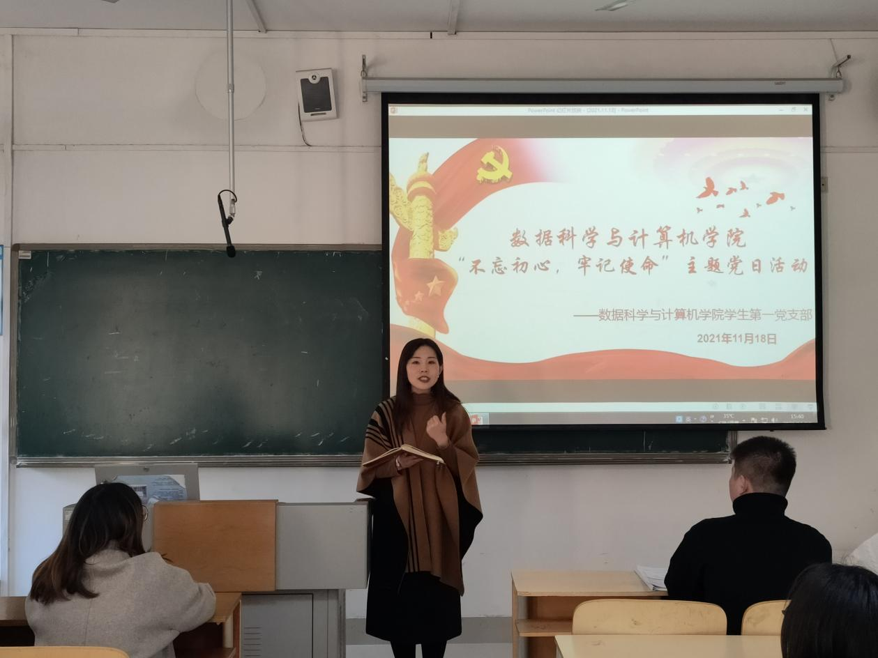 11月18日,为庆祝中国共产党成立100周年,数据科学与计算机学院学生第一党支部组织“不忘初心、牢记使命”主题党日活动,支部全体党员均参加了此次主题当日活动。