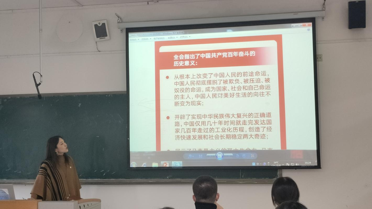 11月18日,学生第一党支部在博学楼207集中专题传达学习党的十九届六中全会精神。会议由学生第一党支部书记魏宝懿老师主持,支部全体党员参加。