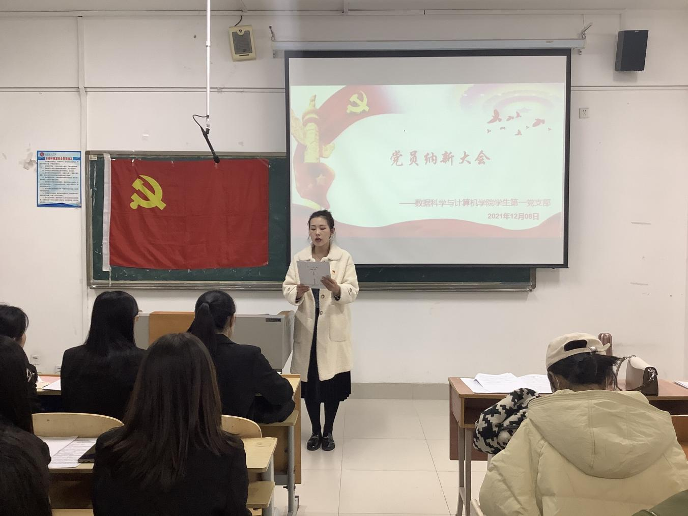 2021年12月8日,数据科学与计算机学院学生第一党支部于在博学楼205召开党员纳新暨预备党员转正大会,本次大会由学生第一党支部书记魏宝懿同志主持。