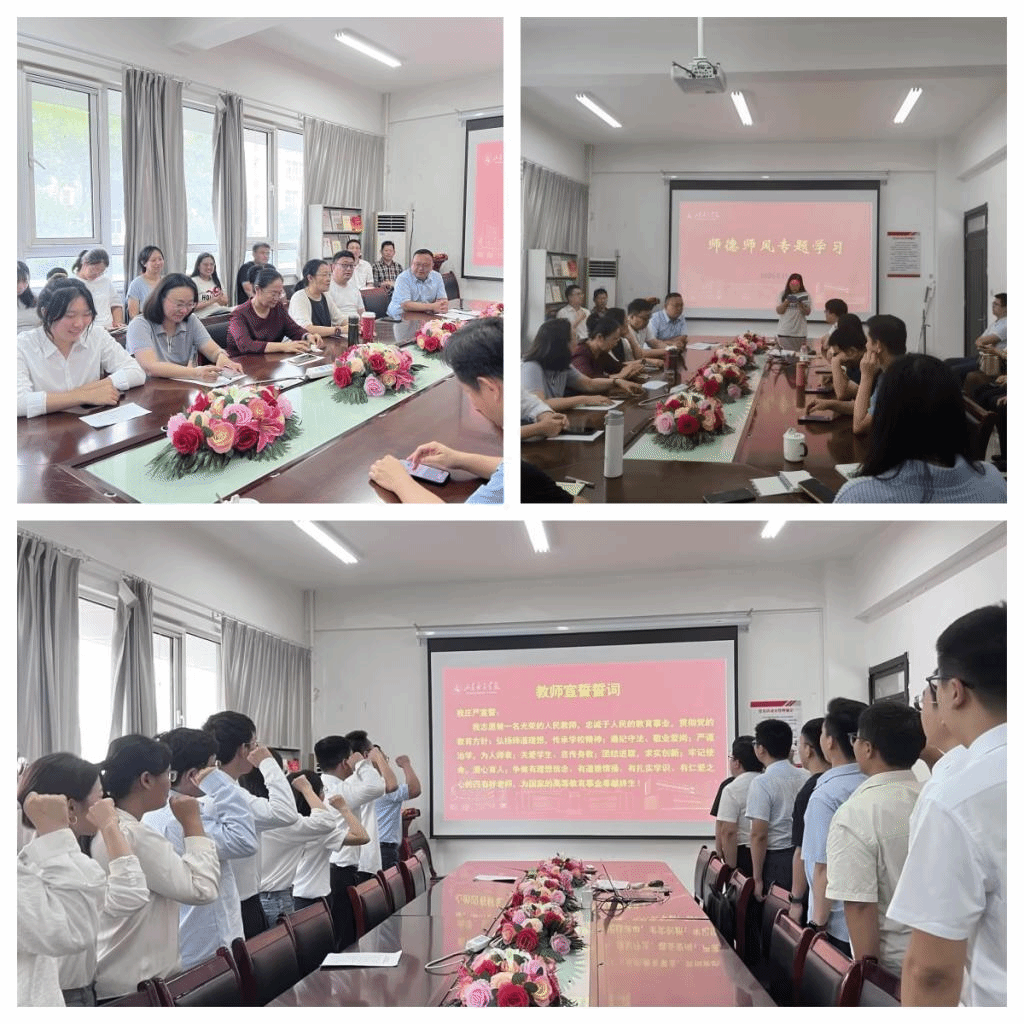 会议最后,学院组织了新入职教师宣誓仪式。新教师们庄严承诺将秉承学校师道精神,忠诚于党的教育事业,以满腔的热情和坚定的信念投入到教书育人的伟大事业中,为学院的发展贡献自己的青春与智慧。