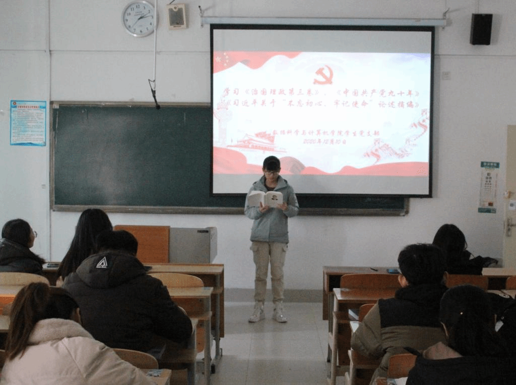 数据科学与计算机学院学生党支部于2020年12月10日在博学楼203组织学习了《习近平谈治国理政》(第三卷)第七、八、九章及《中国共产党九十年》上册等书籍。