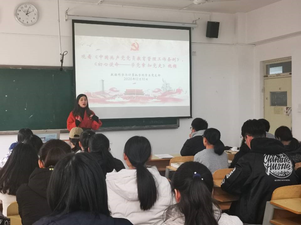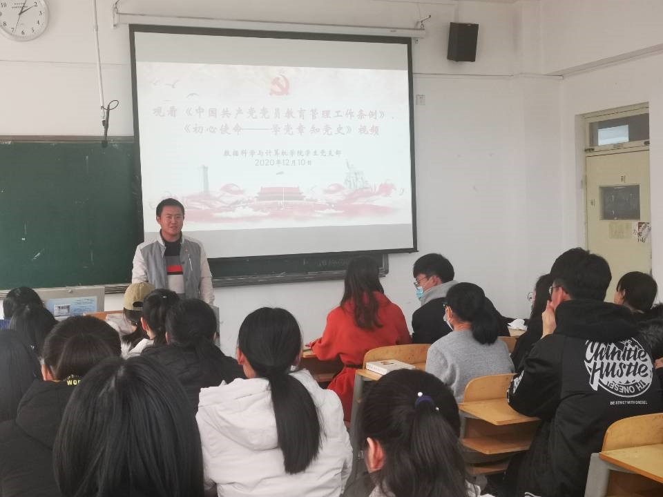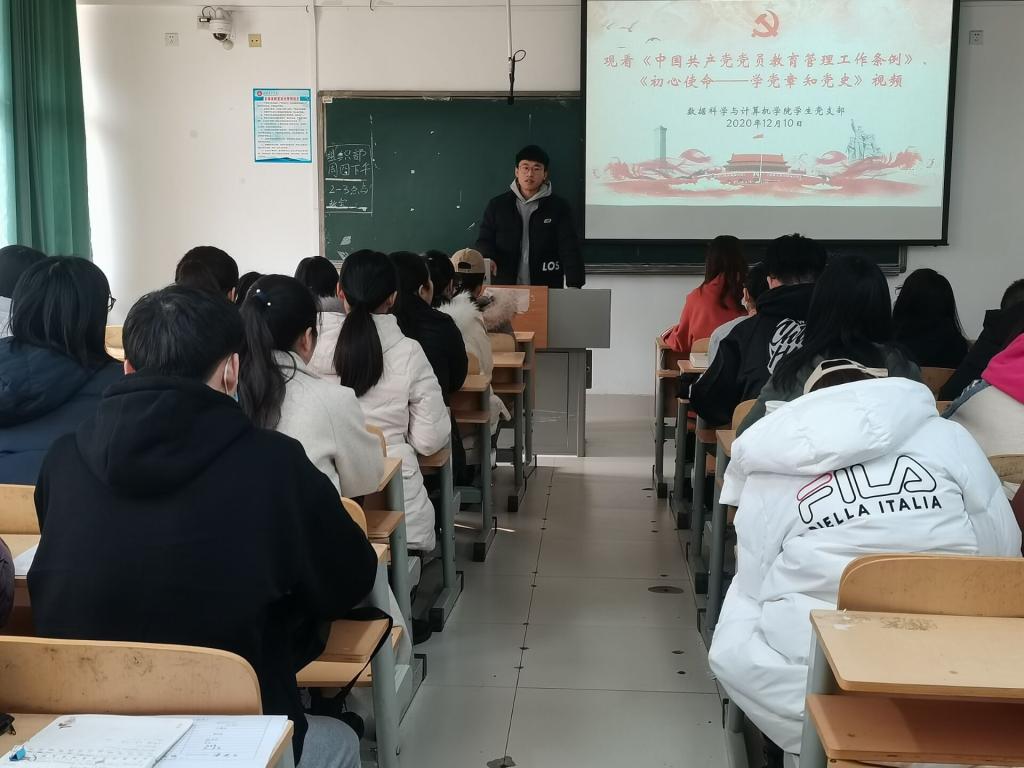 2020年12月10日,数据科学与计算机学院学生党支部于博学203集中观看《中国共产党党员教育管理工作条例》及《初心使命——学党章知党史》等学习视频。
