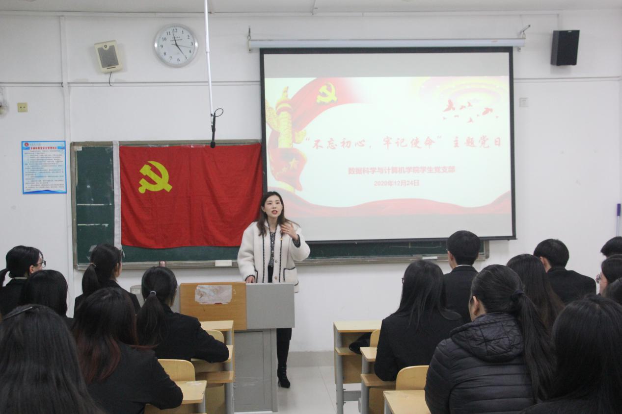 数据科学与计算机学院学生党支部于2020年12月24日组织“不忘初心,牢记使命”主题活动暨入党宣誓仪式。本次大会由学生党支部书记魏宝懿老师主持,学生党支部全体党员参加。