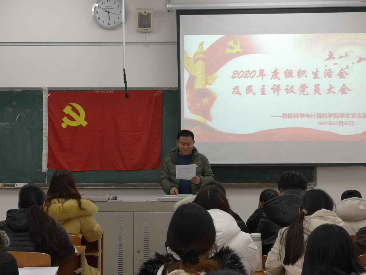 学生党支部对照党章、《中国共产党支部工作条例(试行)》和普通高等学校基层党组织工作条例等规定的职责任务,组织专题组织生活会。数据科学与计算机学院学生党支部于2021年1月8号在博学楼304举行“组织生活会及民主评议党员大会”,参加本次会议的有党支部全体党员。