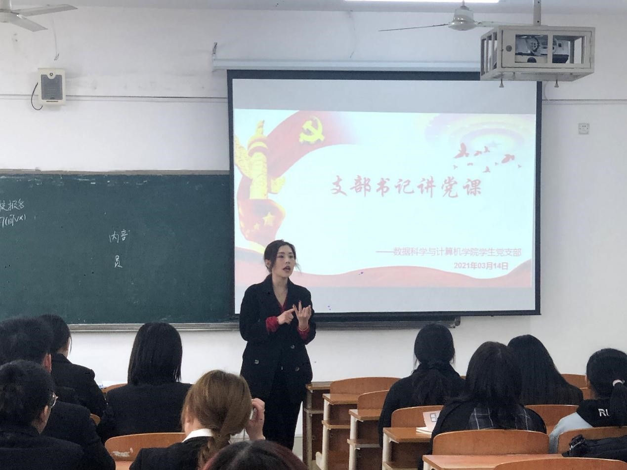 2021年3月14日,数据科学与计算机学院学生党支部在博学楼301组织支部书记讲党课活动。参加此次会议的有支部全体党员,本次会议由党支部书记魏宝懿老师主持进行。
