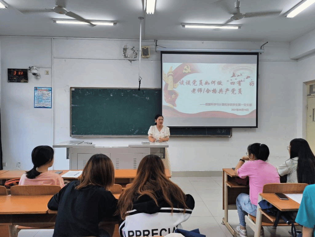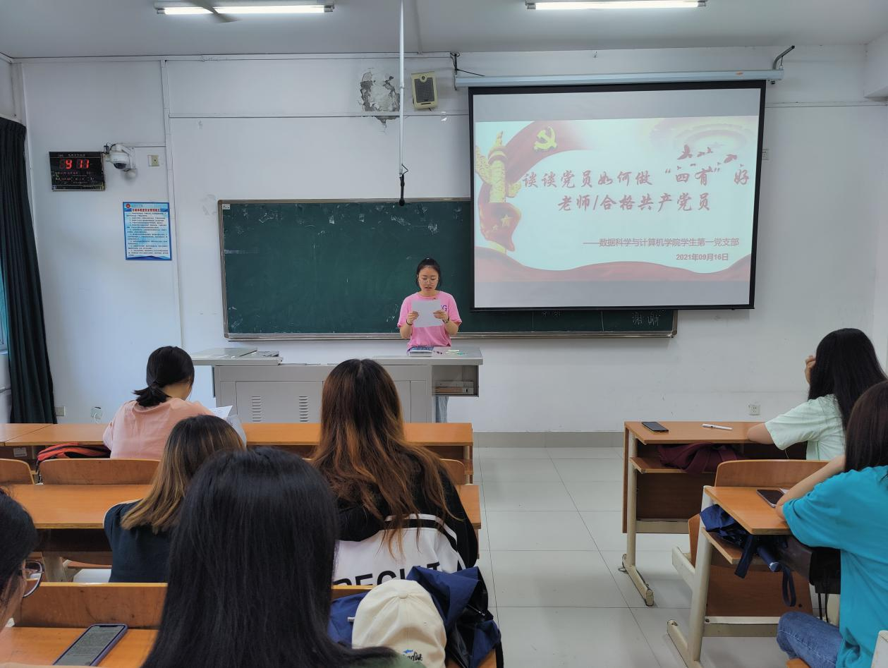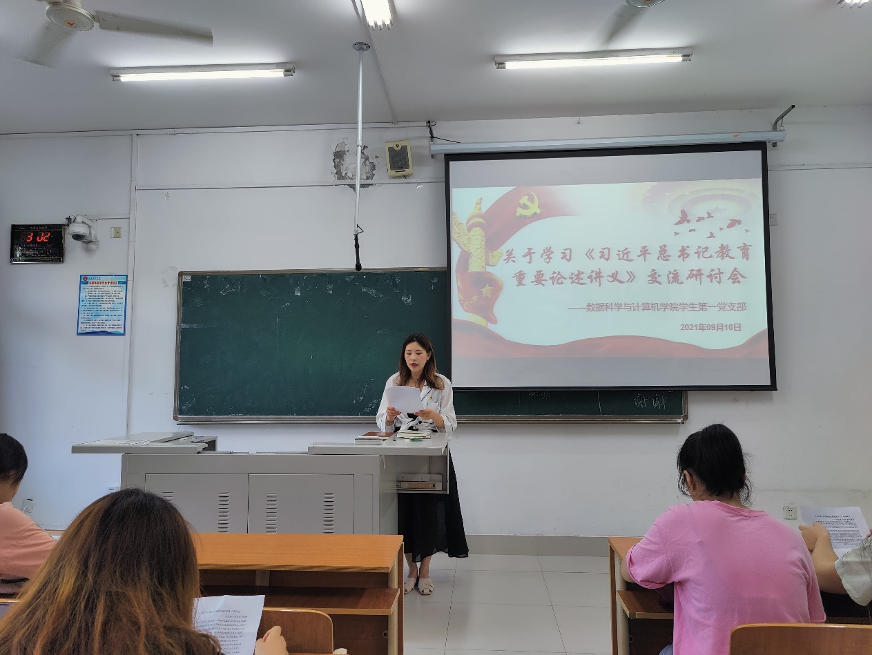 9月16日上午,数据科学与计算机学院学生第一党支部全体党员在博学202组织《习近平总书记教育重要论述讲义》交流研讨会暨做“四有”好老师/合格共产党员主题党日活动。