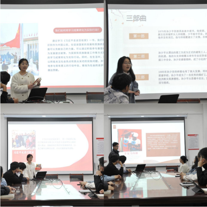 活动伊始,21级人工智能(校企)的张洁同学以“沿着领袖足迹,砥砺奋进前行”为主题,深入讲述了自己阅读《习近平走进百姓家》的读书体会,结合自身学习和生活经历,谈感受、话感恩、悟真理,真切感悟习近平总书记的家庭观,道出“家是最小国,国是千万家”的共同心声。紧接着,来自20级软件工程的秦勇、21级人工智能(校企)的陈俊竹和21级计算机应用(校企)的何金旭三名同学分别为大家分享了《非暴力沟通》、《平凡的世界》和《被讨厌的勇气》三本书籍。三本书的内容既积极向上,又贴近生活,三位同学既谈了对书籍的客观评价,又结合自身经历畅谈阅读感悟,让同学们在紧张的专业学习、繁忙的代码敲击之余,体味读书带来的乐趣。活动最后,大家开展自由讨论,分享阅读时的心得感悟以及自己最近所读书籍的精选语段,相互学习,共同成长。