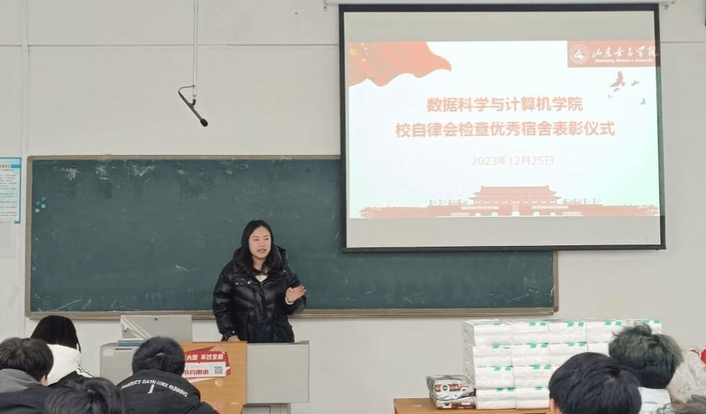 为进一步加强大学生文明教育,发挥学生公寓的育人作用,持续营造一个安全、温馨、清洁、优美的生活学习环境,12月25日上午,数科院举办优秀宿舍表彰仪式,对获奖宿舍发放奖品,以此鼓励大家积极创建文明宿舍。