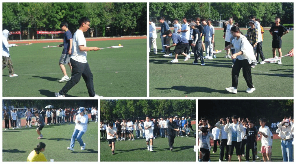 本次趣味运动会亮点纷呈,“托球接力”、“南水北调”、“三人两足”、趣味木头人”和“你画我猜”五项创意活动让人目不暇接。在活动中考验着团队的智慧与默契,将速度与策略、力量与反应完美融合进紧张刺激的游戏中,同学们深刻体会到团结合作的重要性。活动尾声,新生们自发组织的拔河比赛将气氛推向了高潮。这场力量与意志的较量,不仅展现了同学们积极向上的精神风貌,也进一步加深了班级之间的友谊与竞争。整场运动会,不仅是一场体育竞技的盛宴,更是一次心灵的交流与成长的契机。