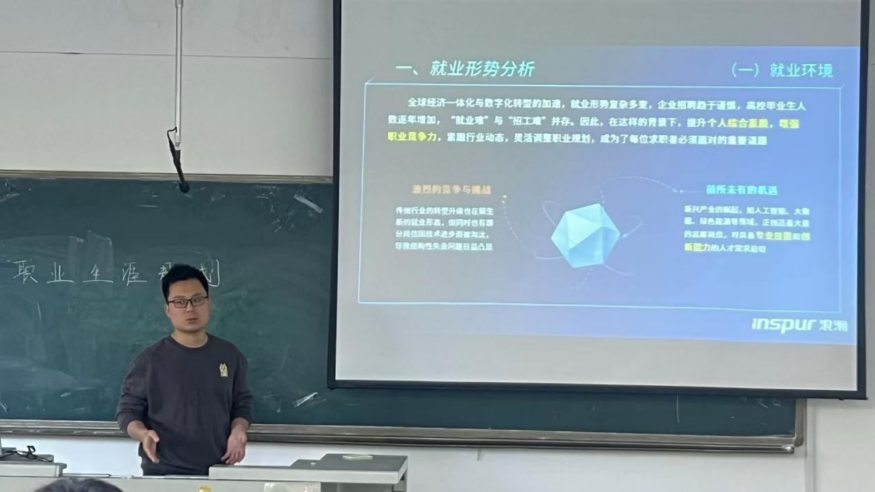 作为合作企业代表,浪潮优派的班级辅导员马腾霄受邀为同学们带来了深入的职业生涯规划指导。他详细阐述了职业生涯规划对于个人成长和职业发展的重要性,鼓励同学们积极参与,通过大赛的平台锻炼自己,明确职业目标,提升就业竞争力。