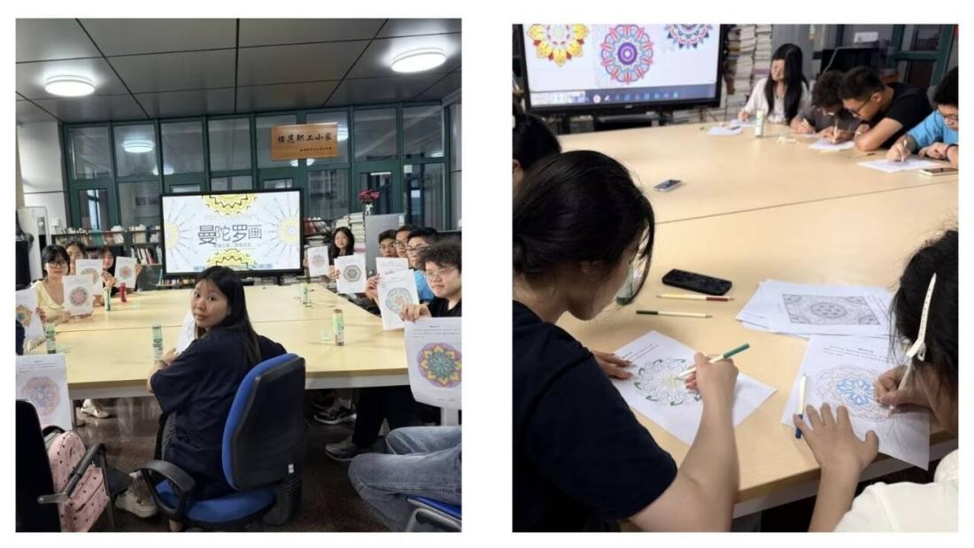 曼陀罗,一种结合心理与艺术疗愈的创作形式,成为同学们表达内心世界的窗口。同学们拿起画笔,将自己的情感、想法和对美好生活的向往融入到一幅幅画作之中。这场沙龙不仅为学生的校园生活增添了一抹灵动的艺术色彩,更以温柔的方式叩响了每个参与者的心门。