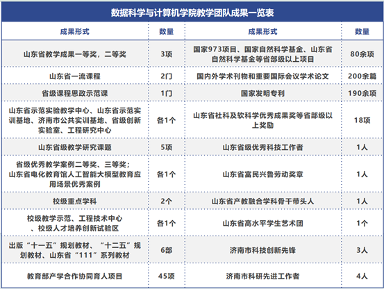 学院2012年获批山东省、济南市两级服务外包人才培养基地,2013年获批山东省卓越工程师试点专业,2016年获批国家级大学生工程实践教育中心,2017年获批山东省校企共建工科专业,2018年获批教育部数据中国“百校工程”产教融合项目、获批教育部“全国应用型人才培养工程”培训基地、获批山东省省级教学成果奖一等奖1项,二等奖1项, 2019年计算机科学与技术专业被评为山东省首批一流本科专业建设点、《程序设计基础》被评为省级一流课程,2021年数字媒体技术专业成功申报省级一流本科专业建设点、数字创意产业学院获批首批省级现代产业学院、获批山东省省级教学成果奖二等奖1项。