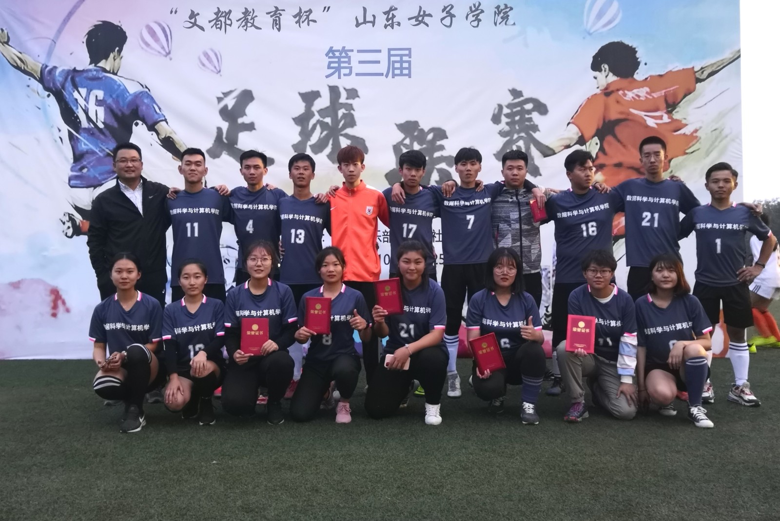 近日,山东女子学院第三届足球联赛在田径场顺利闭幕,我院代表队经过11场次的激烈角逐,喜获大满贯!男足、女足代表队喜获两个冠军、两个最佳射手、两个最佳门将、一个精神文明奖。