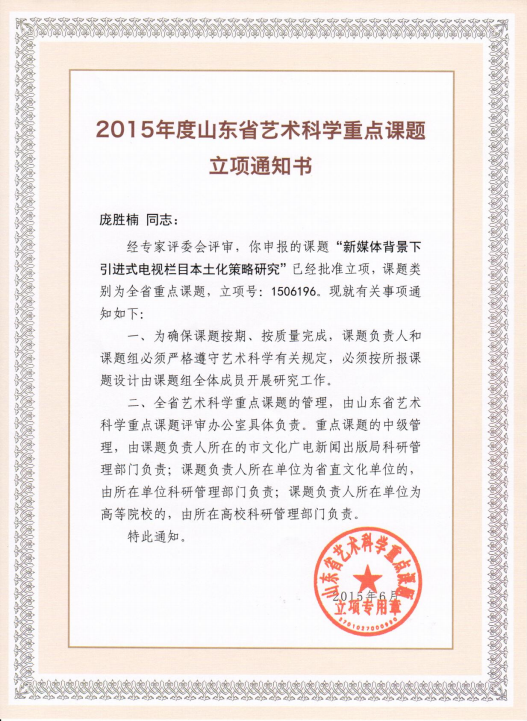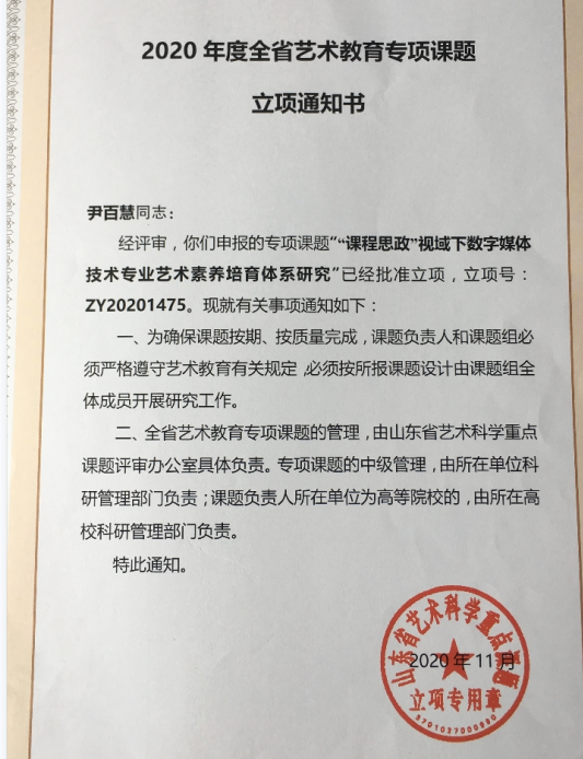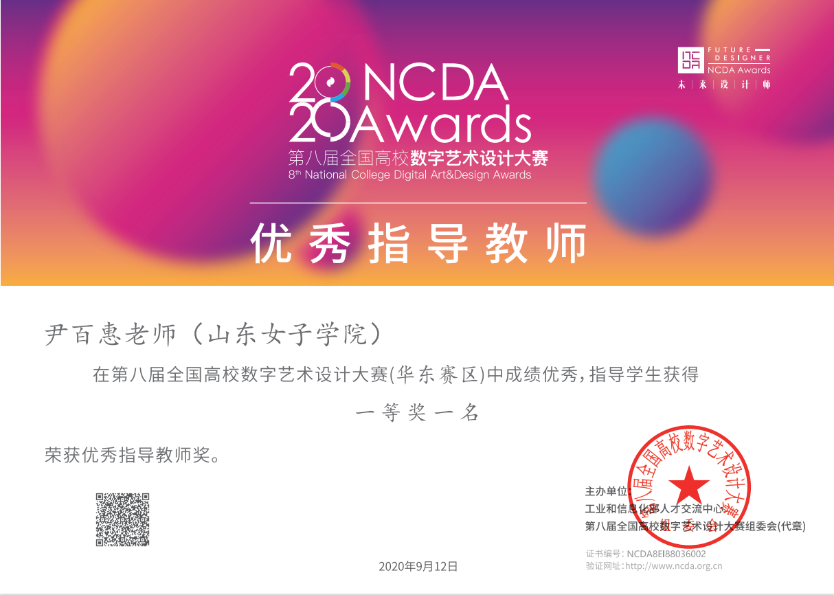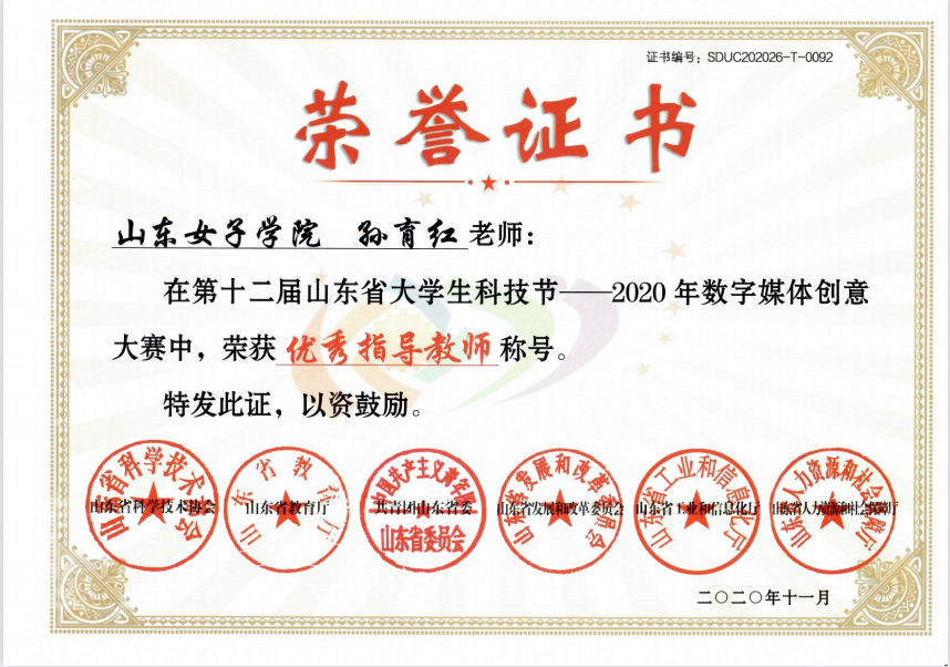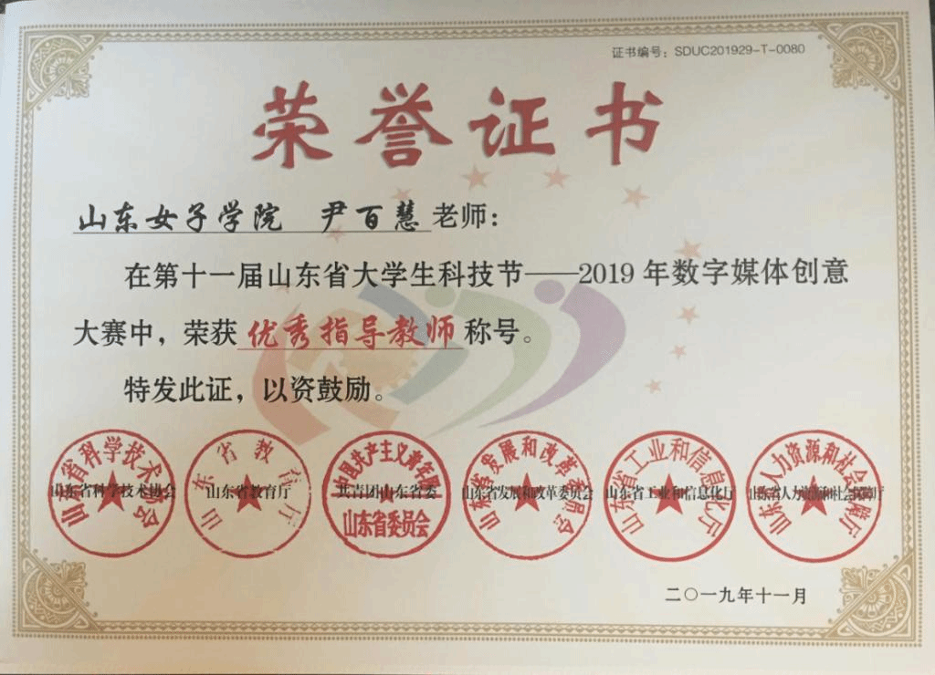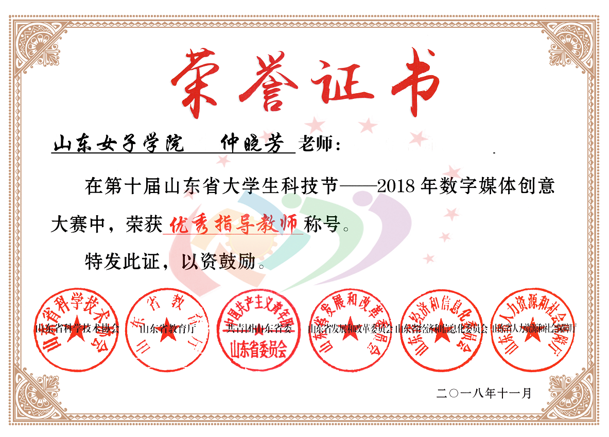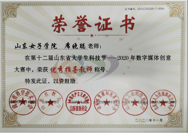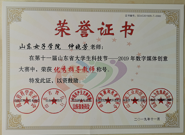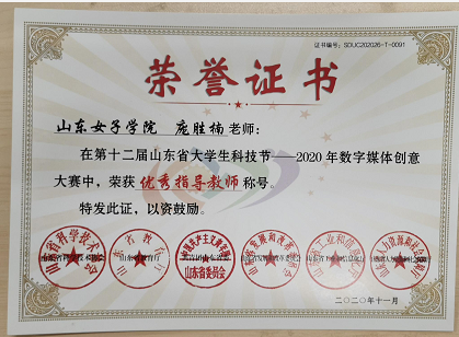 山东省大学生数字媒体创意大赛优秀指导教师奖励