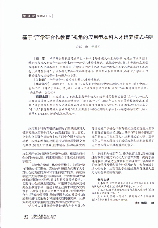 (23)基于“产学研合作教育”视角的应用型本科人才培养模式构建