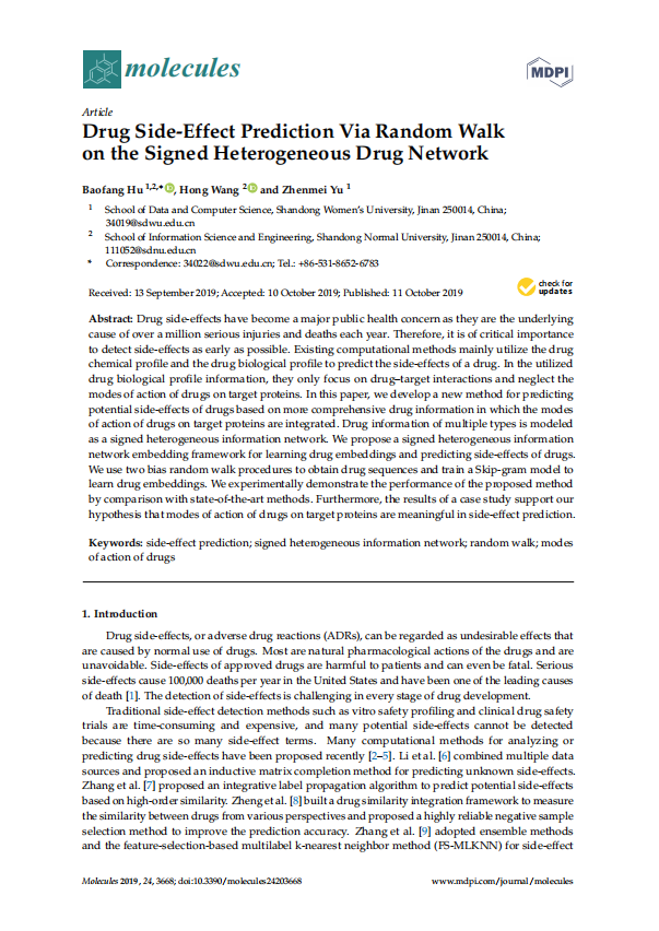 (3)DrugSide-EffectPredictionViaRandomWalkontheSignedHeterogeneousDrugNetwork