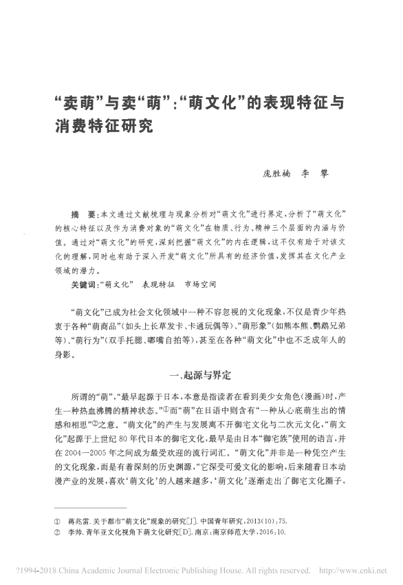 (19)“卖萌”与卖“萌”——“萌文化”的表现特征与消费特征研究
