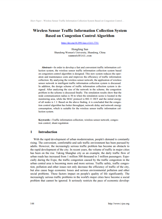 (13)Wirelesssensortrafficinformationcollectionsystembasedoncongestioncontrolalgorithm