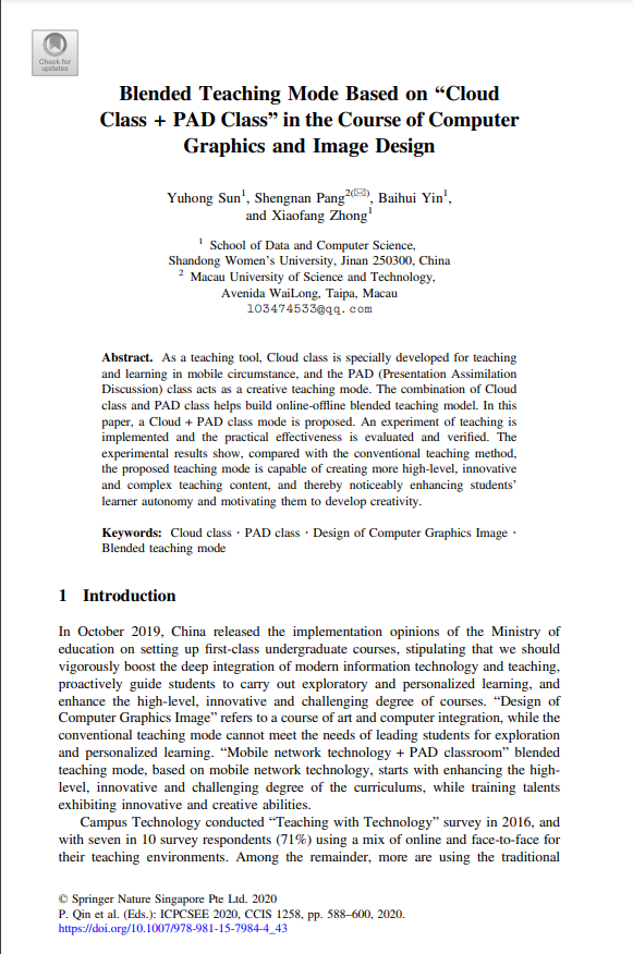 (14)BlendedTeachingModeBasedon“CloudClass+PADClass”inTheCourseofComputerGraphicsandImageDesign