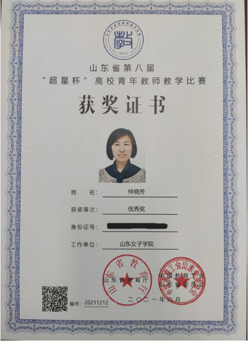 山东省第八届超星杯高校青年教师教学比赛优秀奖