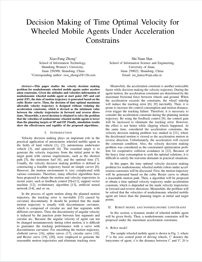 (15)DecisionMakingofTimeOptimalVelocityforWheeledMobileAgentsUnderAccelerationConstrains