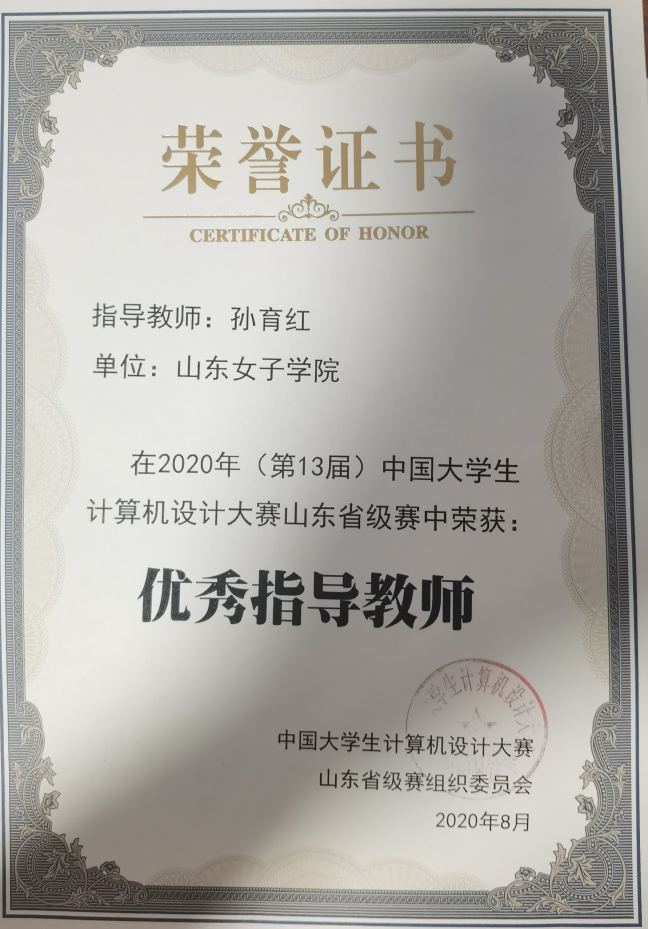 中国大学生计算机设计大赛山东省级比赛优秀指导老师