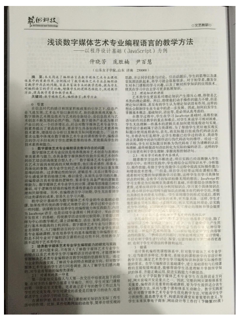 (25)浅谈数字媒体艺术专业编程语言的教学方法-以程序设计基础(Javascript为例)