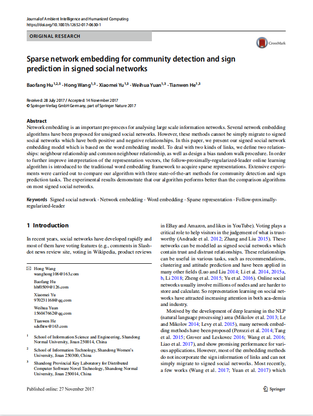 (6)Sparsenetworkembeddingforcommunitydetectionandsignpredictioninsignedsocialnetworks
