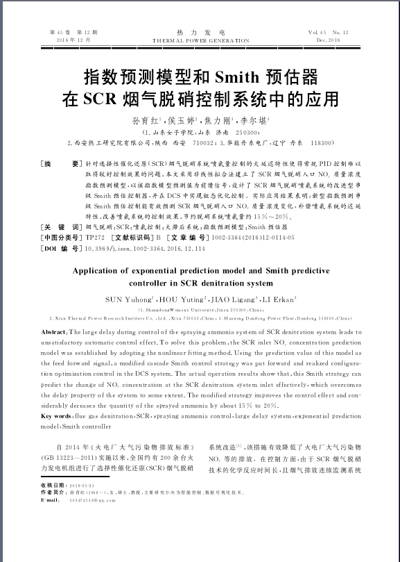 (22)指数预测模型和Smith预估器在SCR脱硝系统中的应用