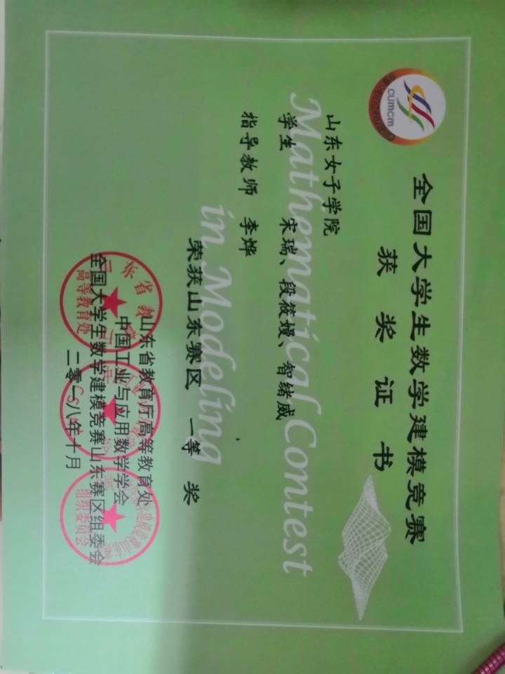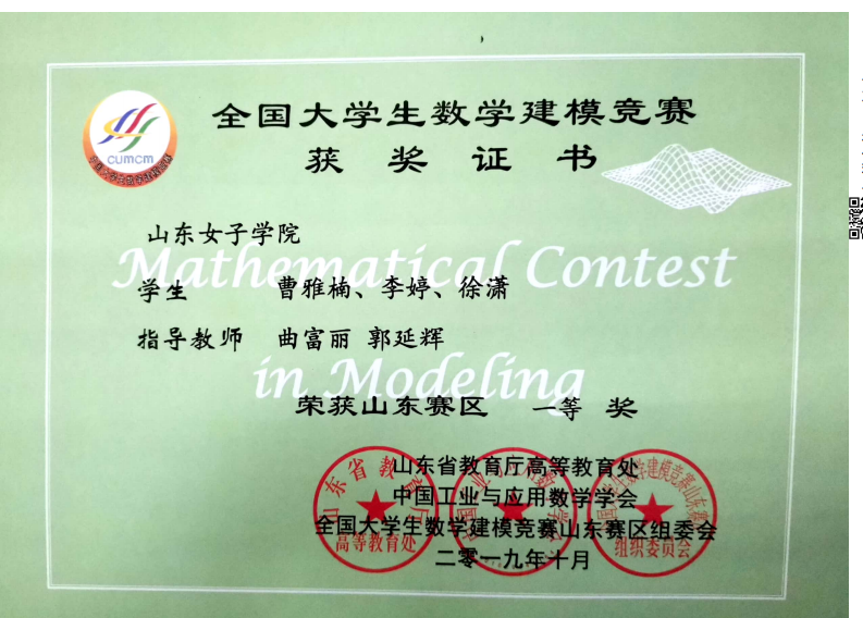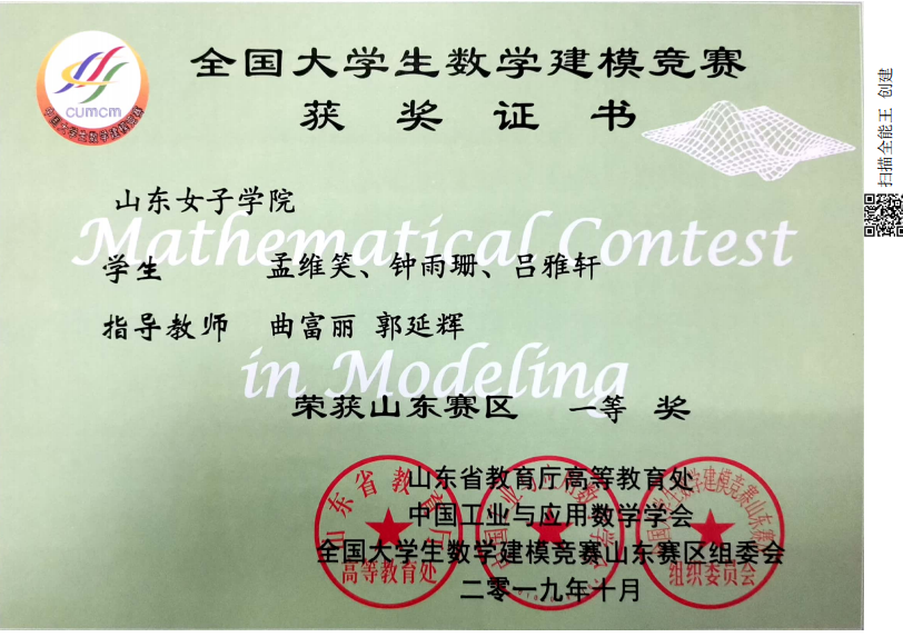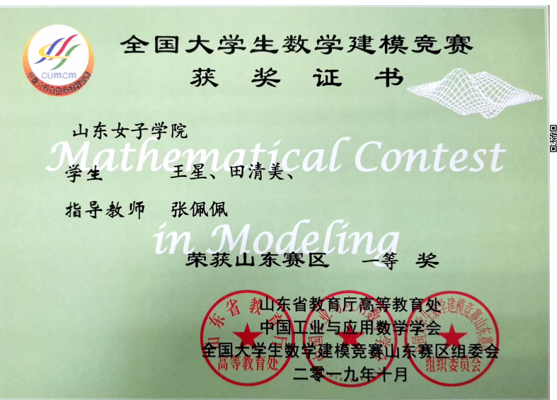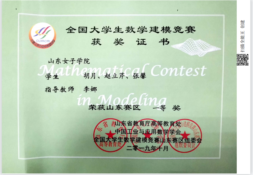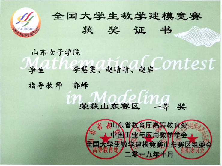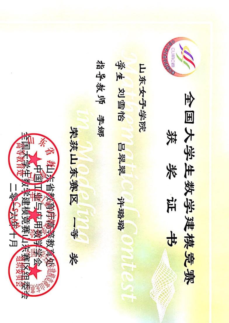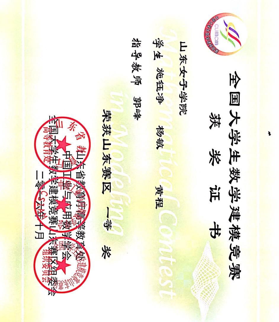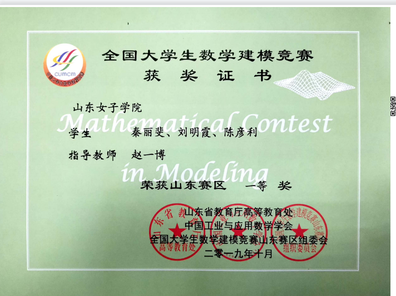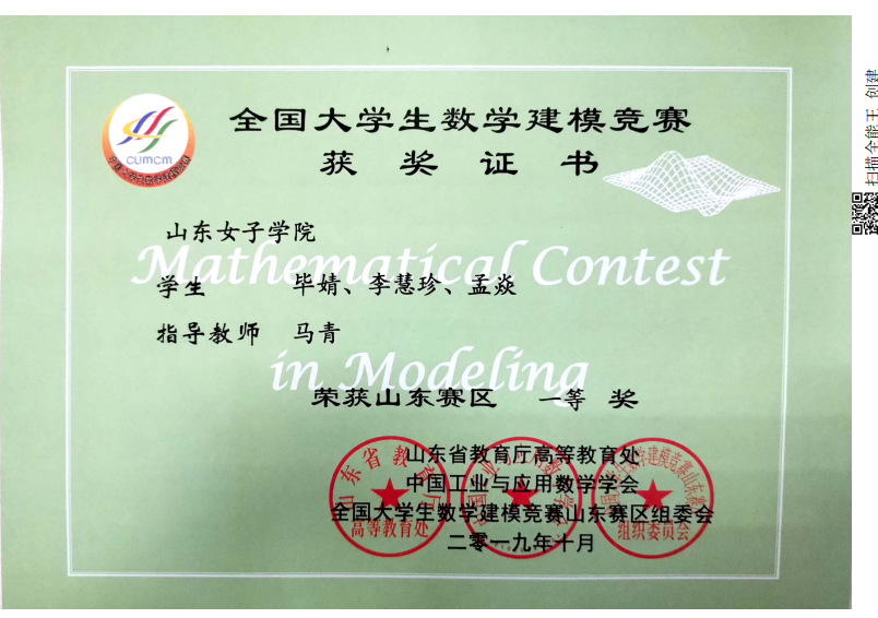 2019.10 李梦茹 “高教社杯”全国大学生数学建模竞赛 省级一等奖