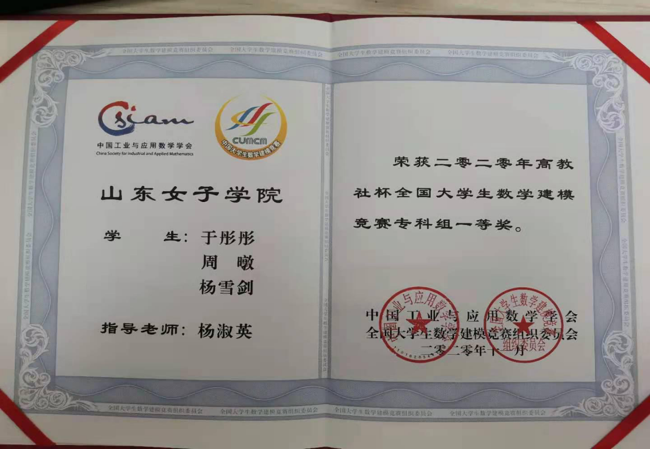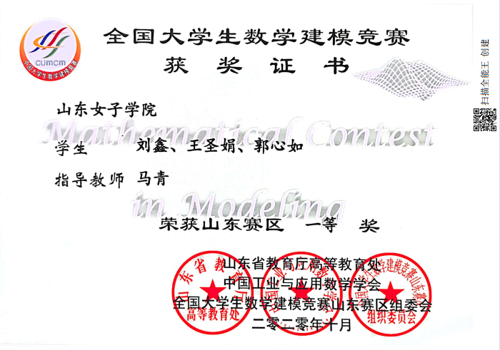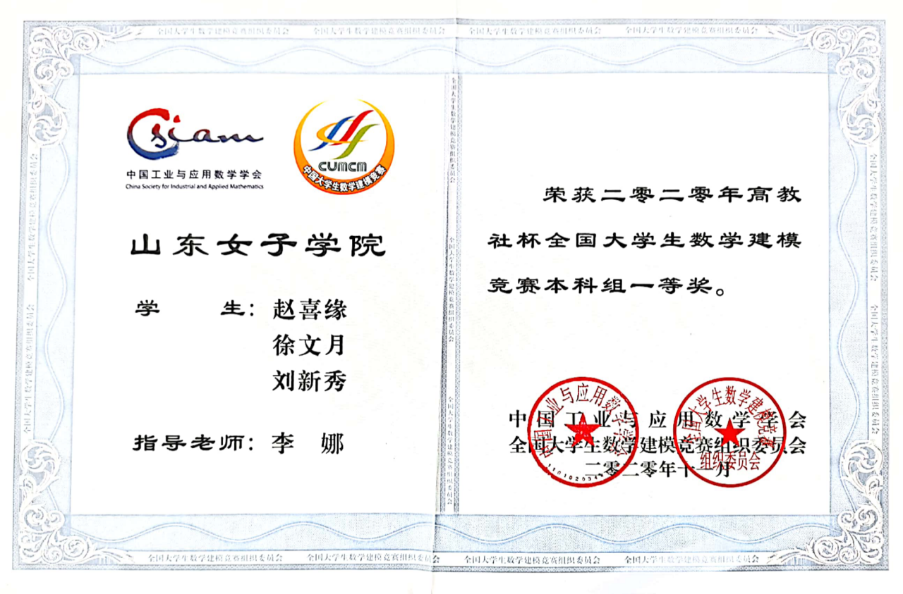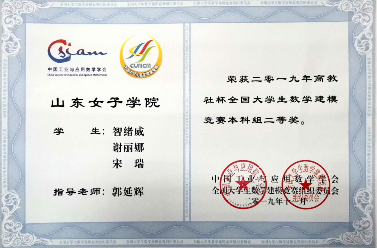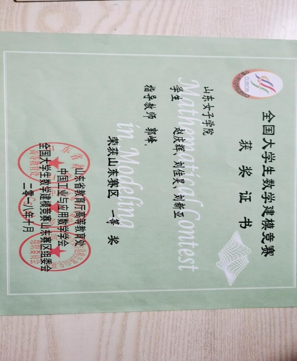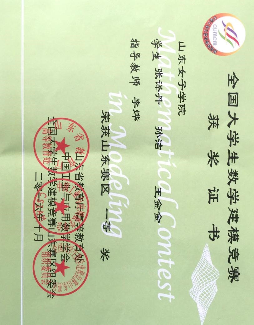 2019.10 李梦茹 “高教社杯”全国大学生数学建模竞赛 省级一等奖