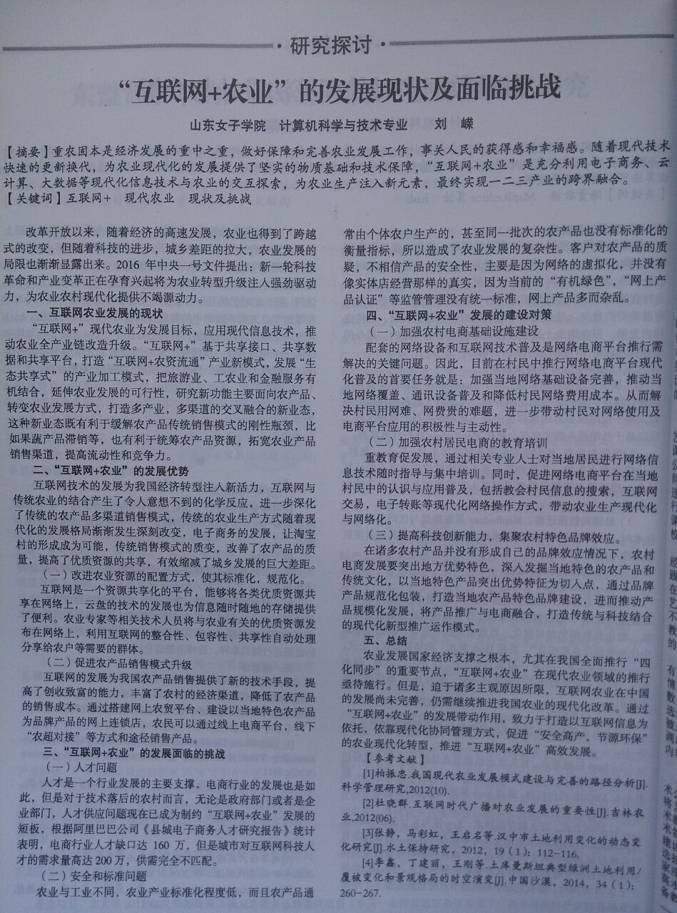 2016.04 刘嵘 “互联网+农业”的发展现状及面临挑战 教师