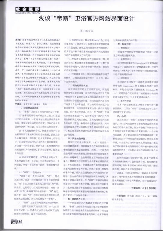 2016.03 邵长宏 浅谈“帝斯”卫浴官方网站界面设计 明日风尚