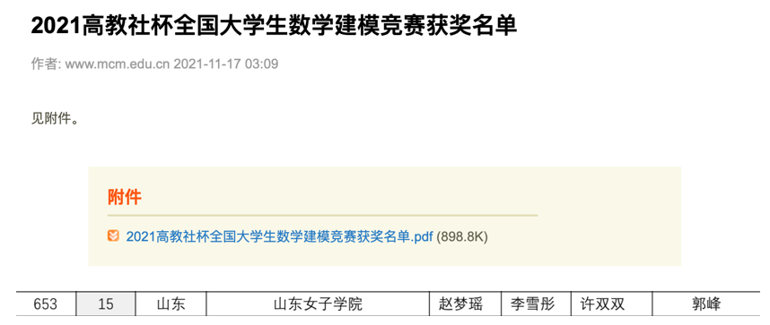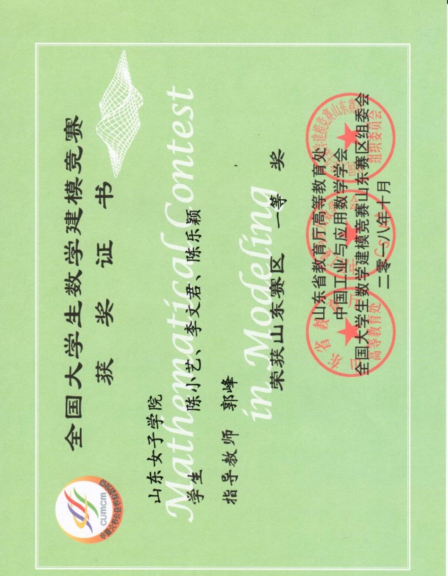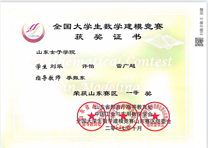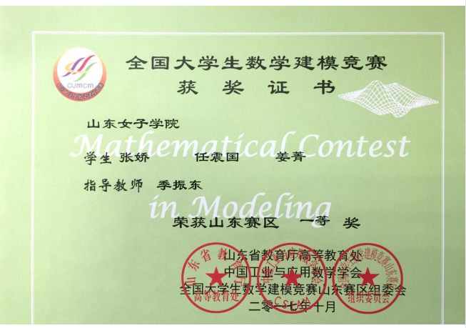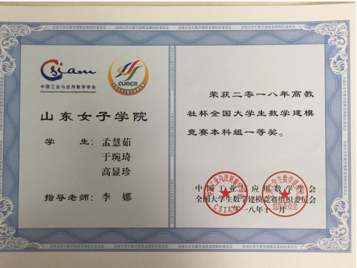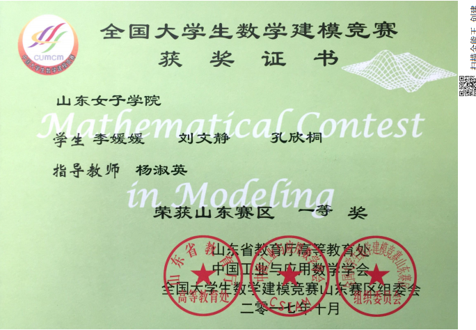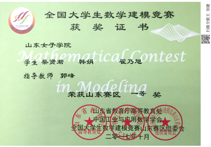 2017.10 李媛媛 “高教社杯”全国大学生数学建模竞赛 省级一等奖