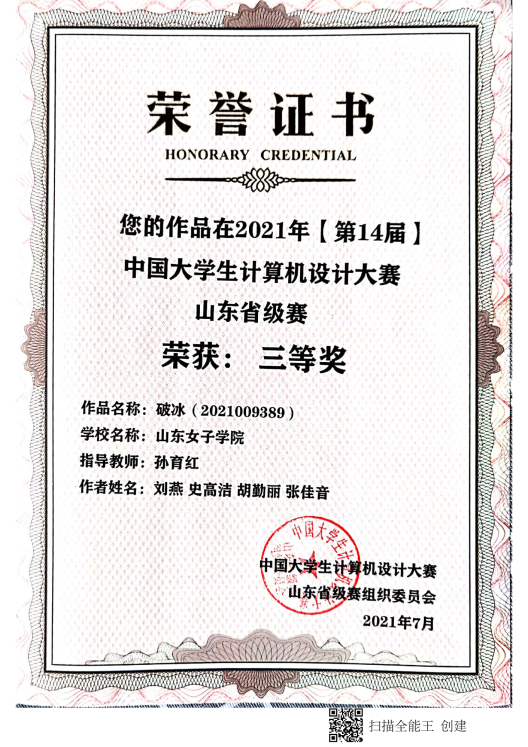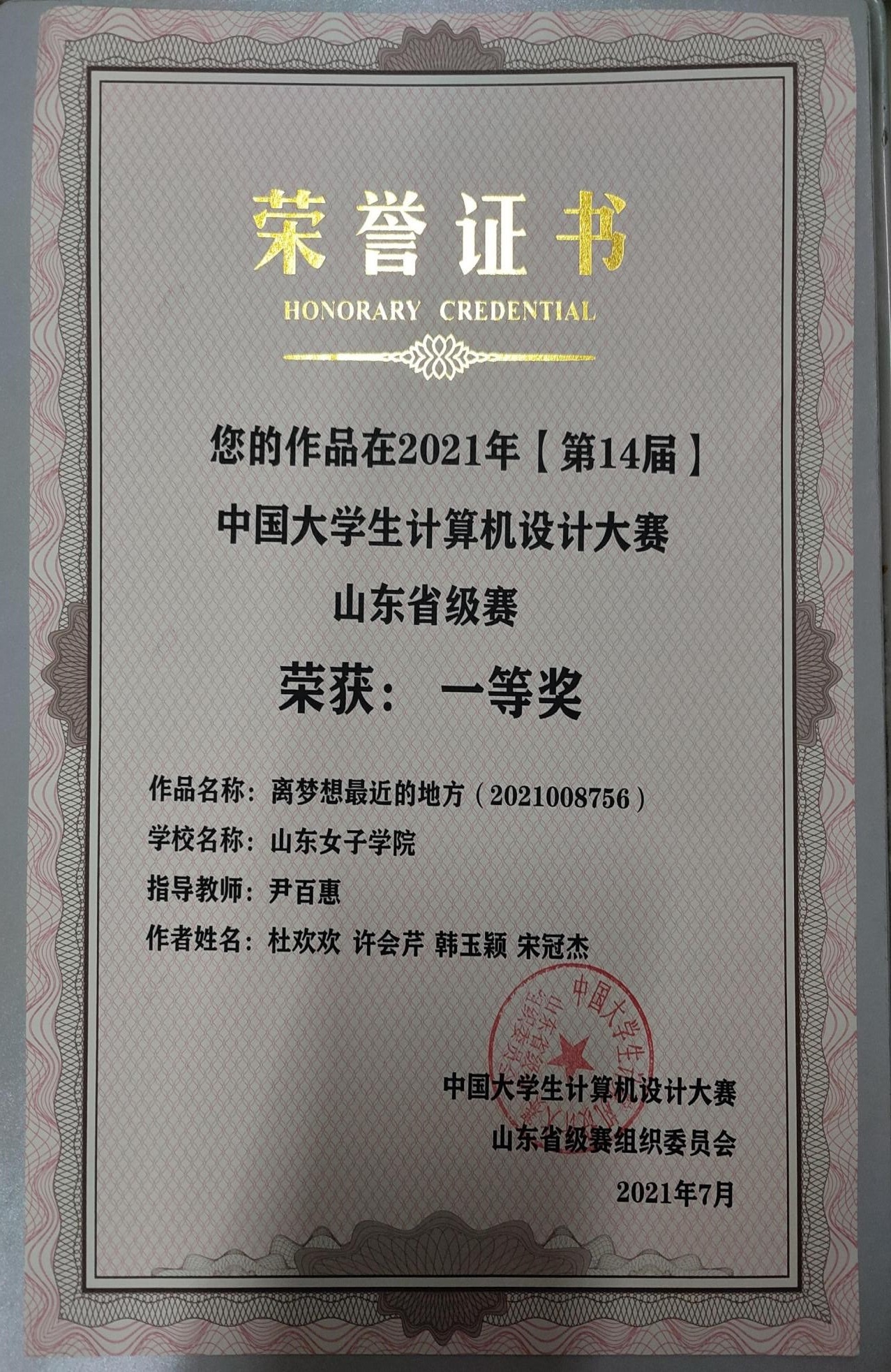 2021.07 杜欢欢 中国大学生计算机设计大赛 省级一等奖