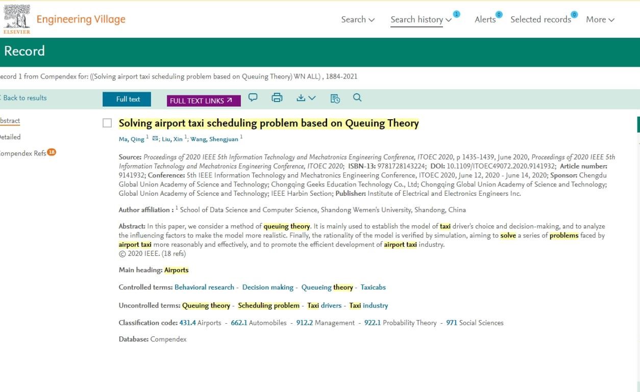 2020.06 刘鑫 Solving airport taxi scheduling problem based on Queuing Theory 2020 IEEE 5th Information Technology and Mechatronics Engineering Conference Registration From