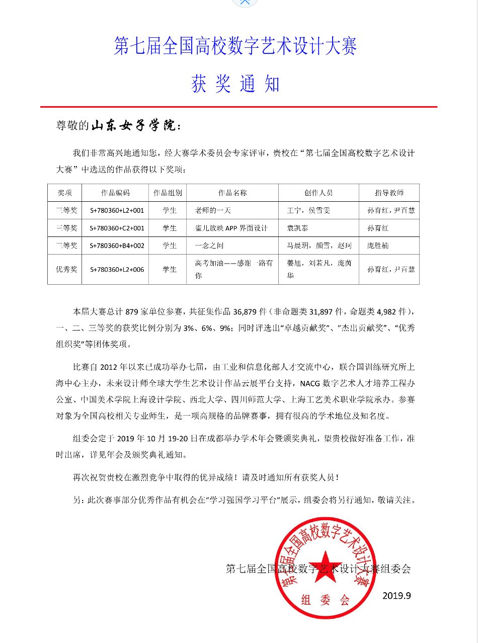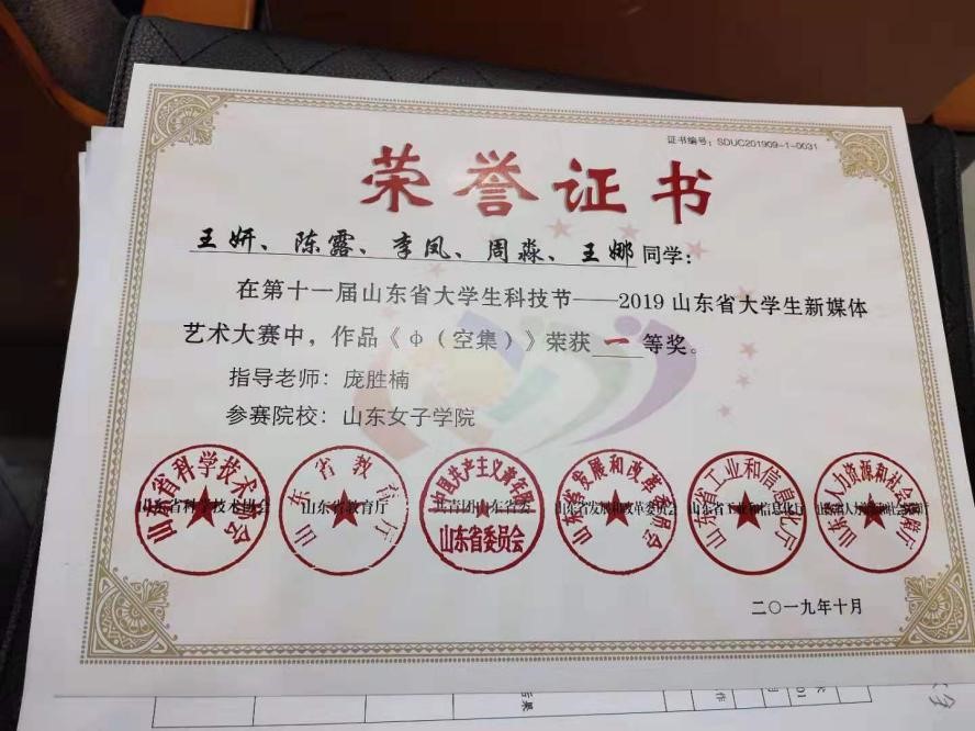 2019.12 王妍 山东省大学生新媒体艺术大赛 省级一等奖