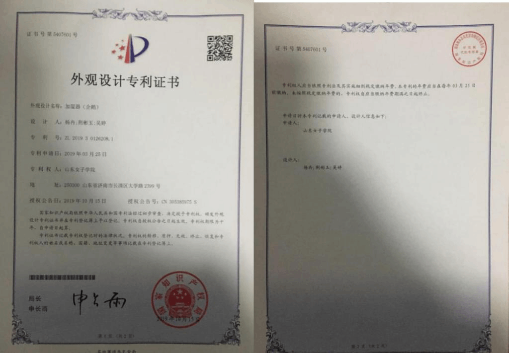 2019.10 杨冉 加湿器(企鹅) 外观设计专利