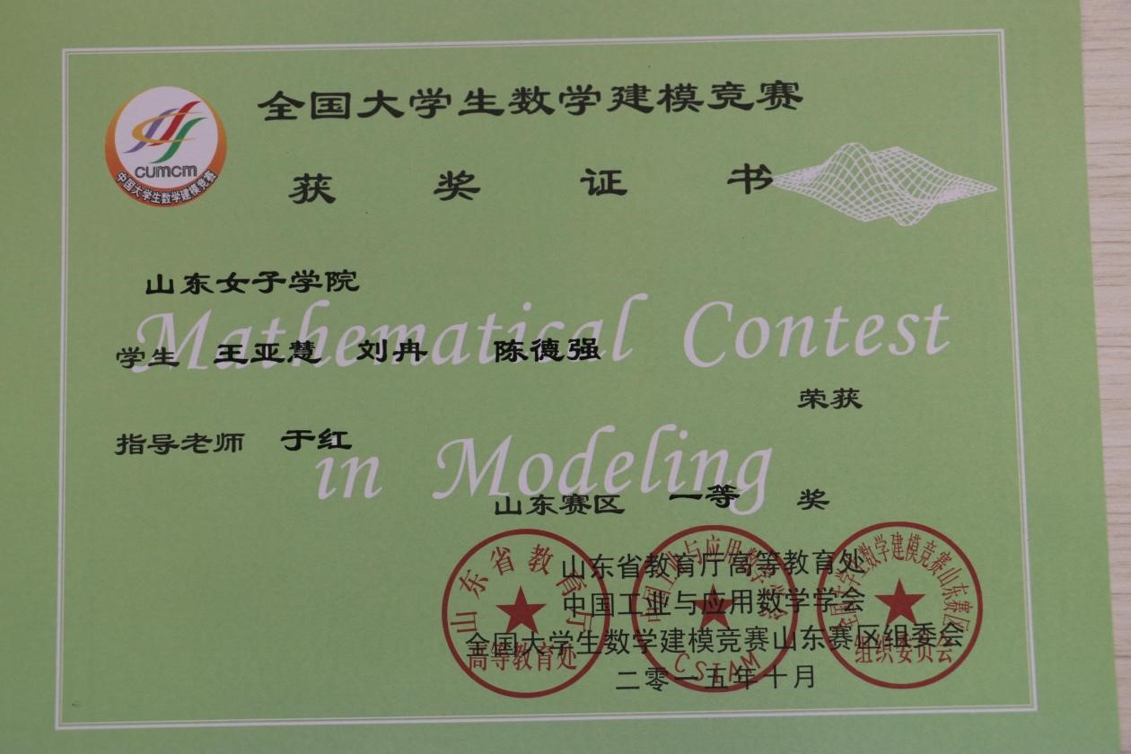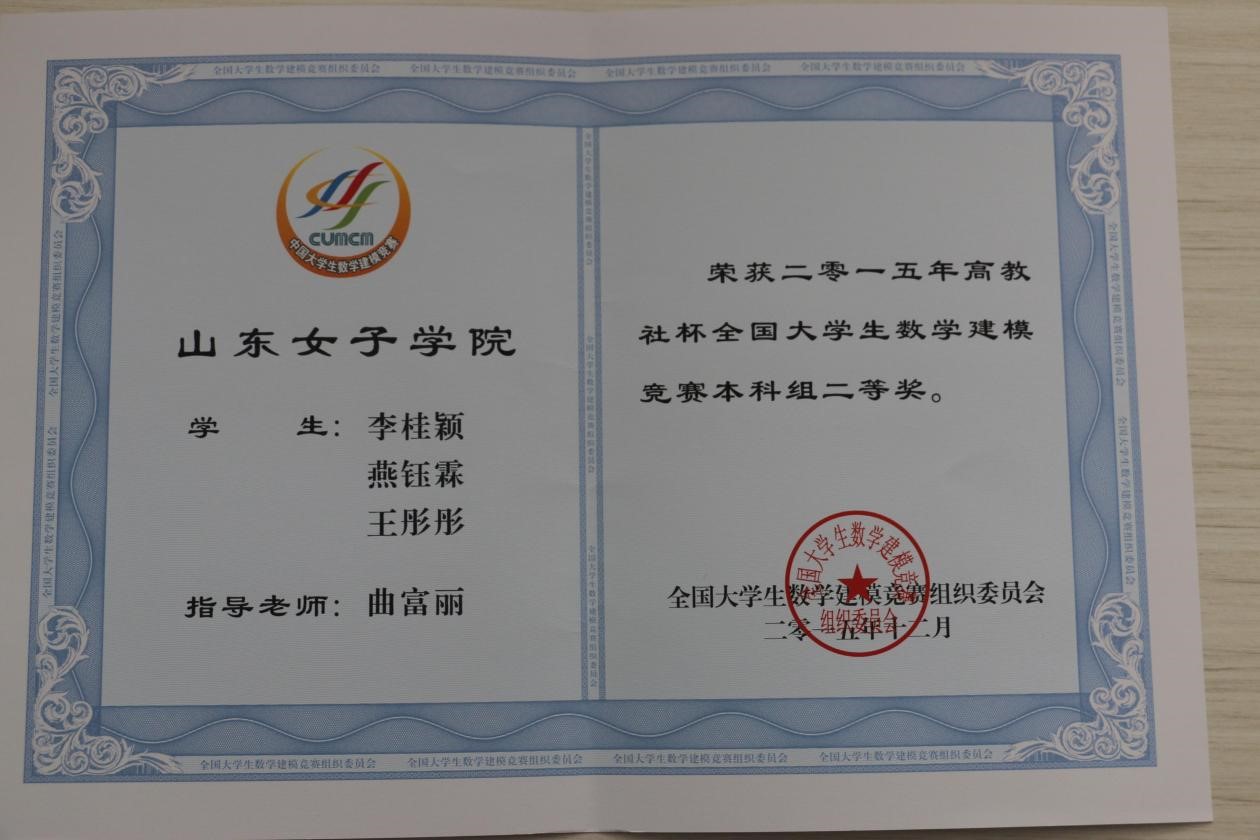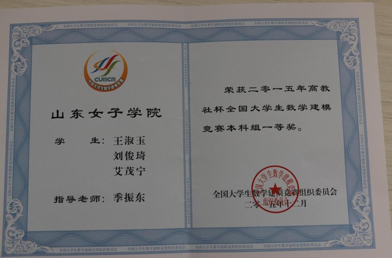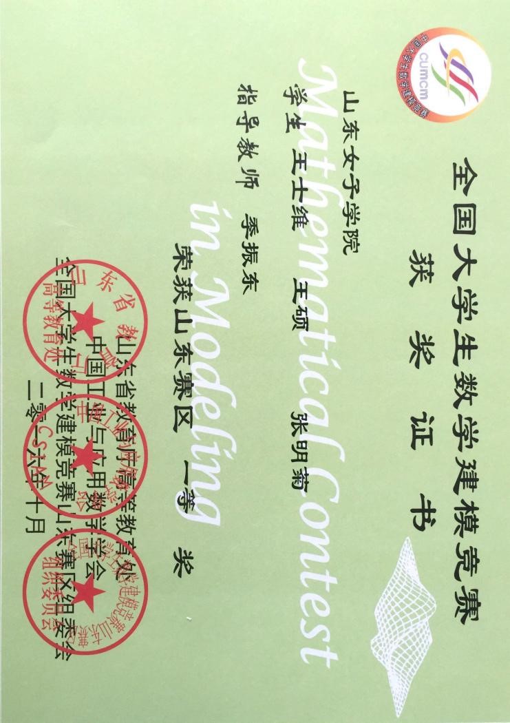 2015.11 王淑玉 “高教社杯”全国大学生数学建模竞赛 国家一等奖