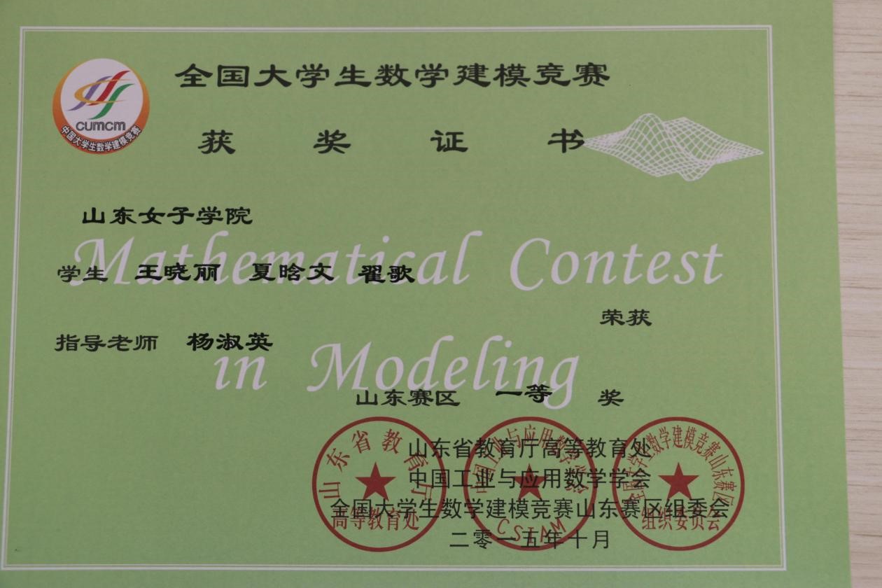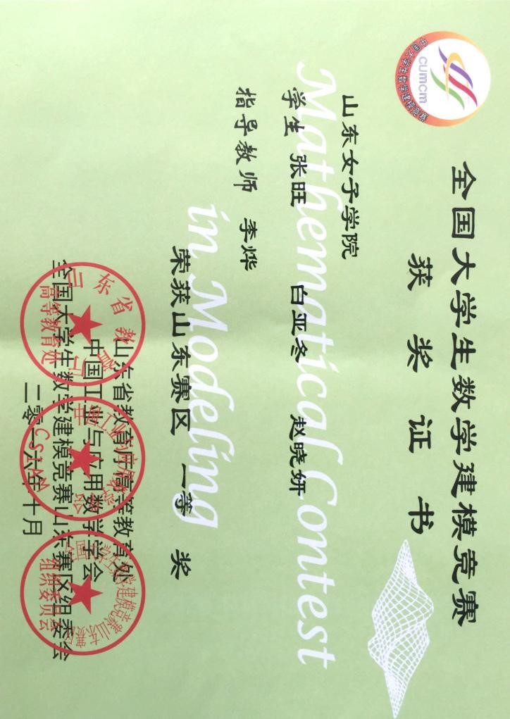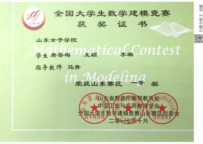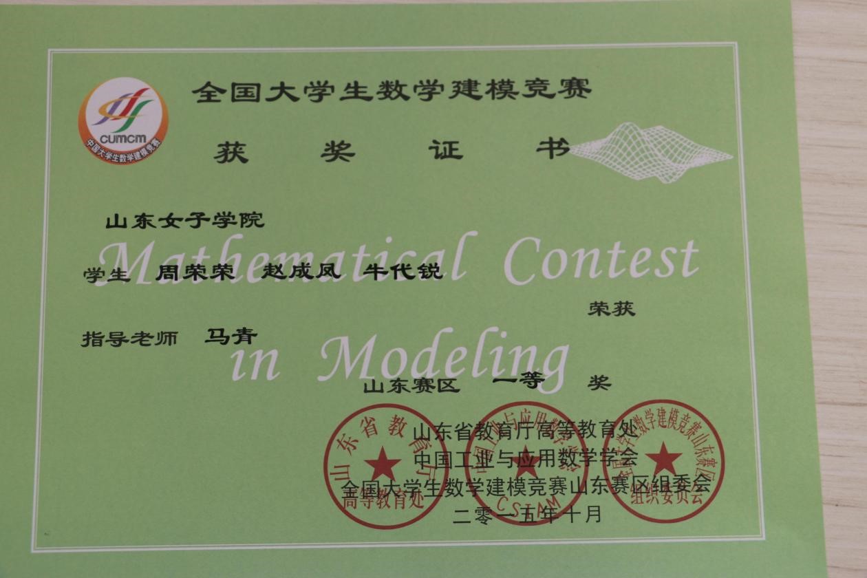 2015.11 王淑玉 “高教社杯”全国大学生数学建模竞赛 国家一等奖