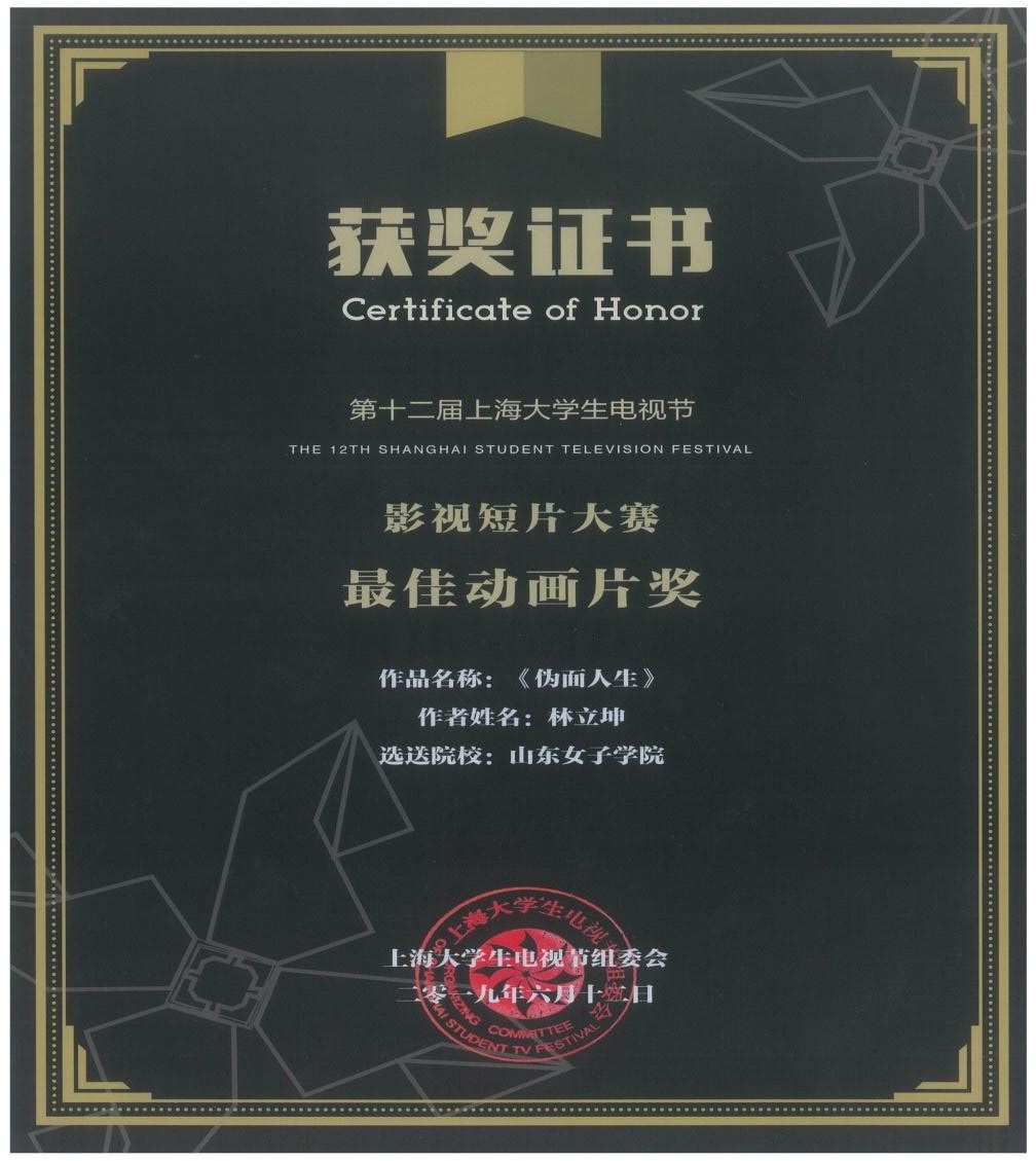 2019.06 林立坤 第十二届上海大学生电视节最佳动画片奖 国家级