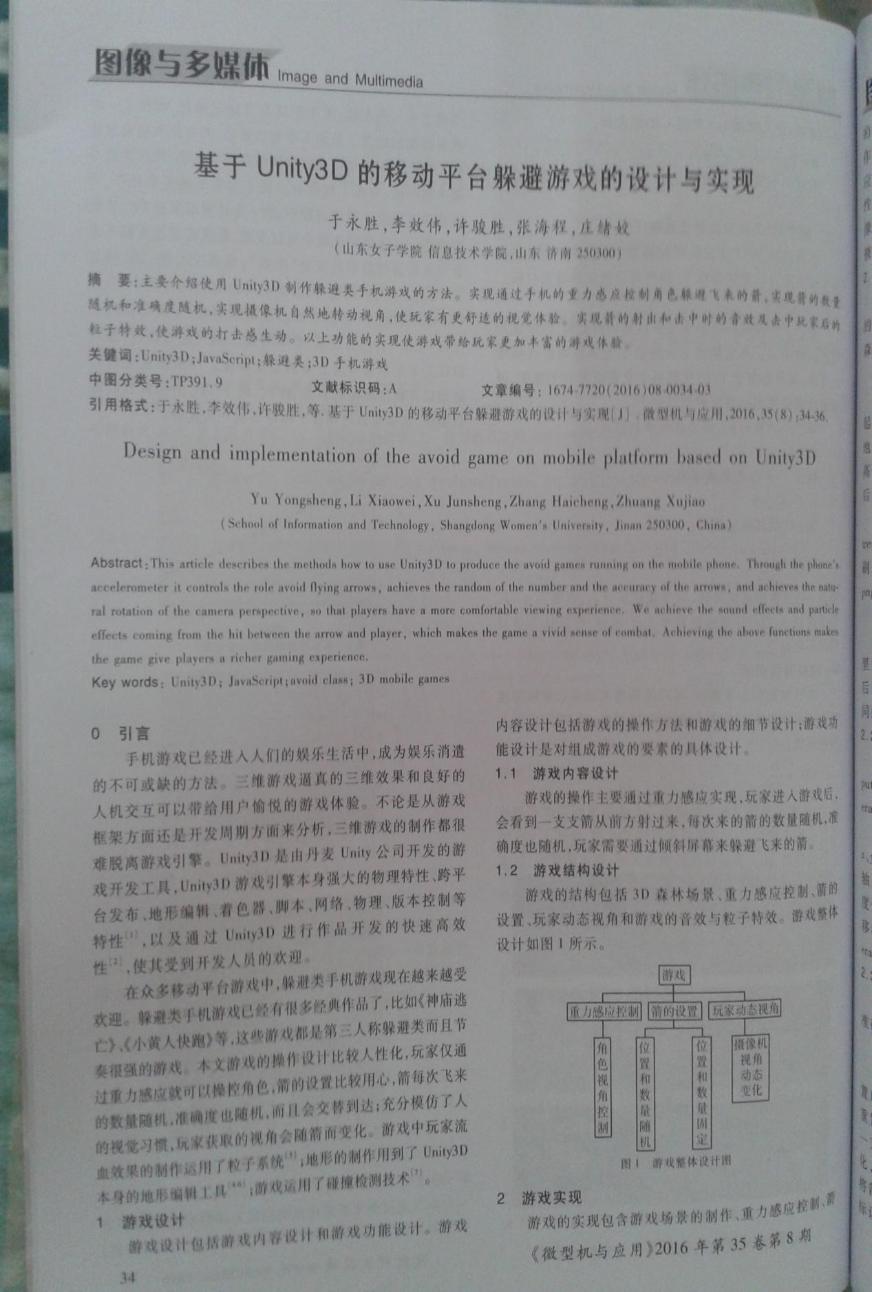 2016.04 于永胜 基于Unity3D的移动平台躲避游戏的设计与实现 微型机与应用