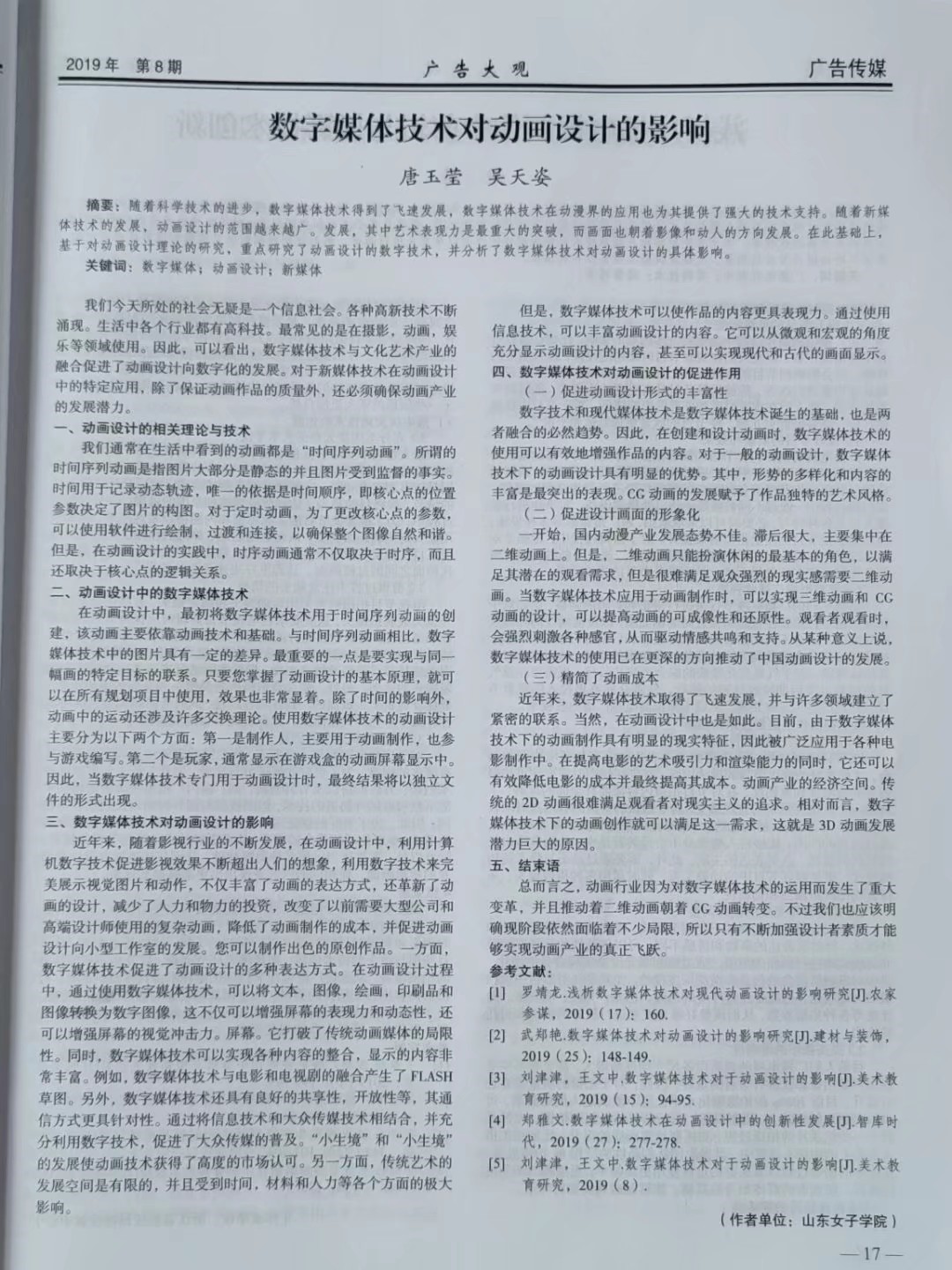 2019.08 唐玉莹 数字媒体技术对动画设计的影响 广告大观