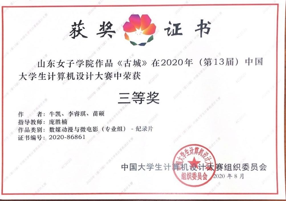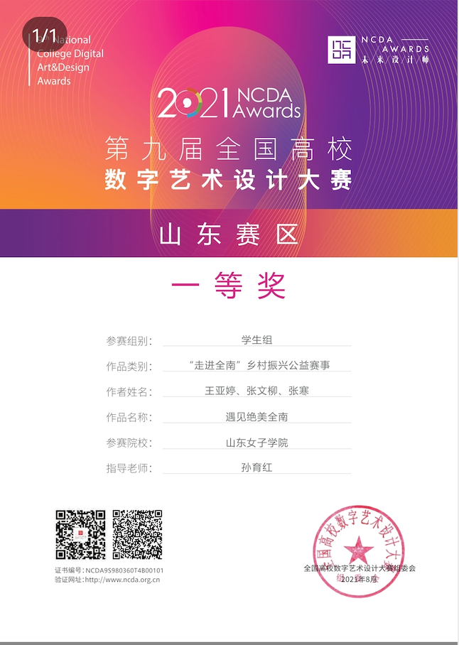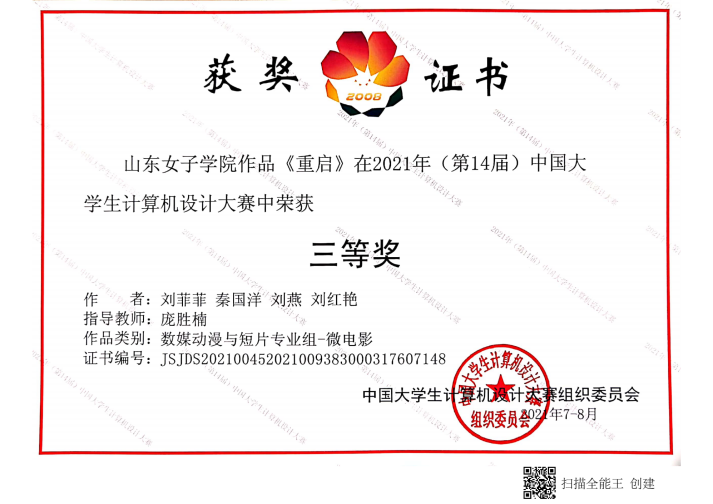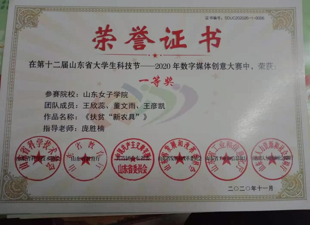 2020.08 王欣蕊 山东省大学生数字媒体创意大赛 省级一等奖