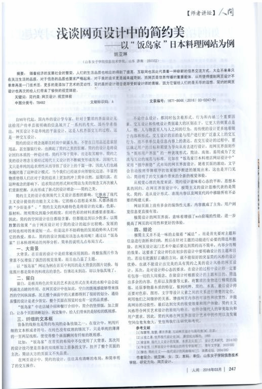 2016.03 姚亚琳 浅谈网页设计中的简约美-以“饭岛家”日本料理网站为例 人间