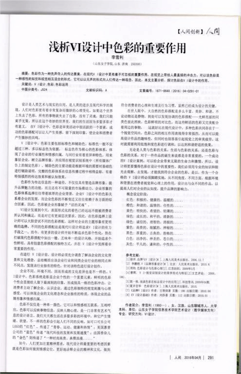 2016.04 李雪利 浅析VI设计中色彩的重要作用 人间