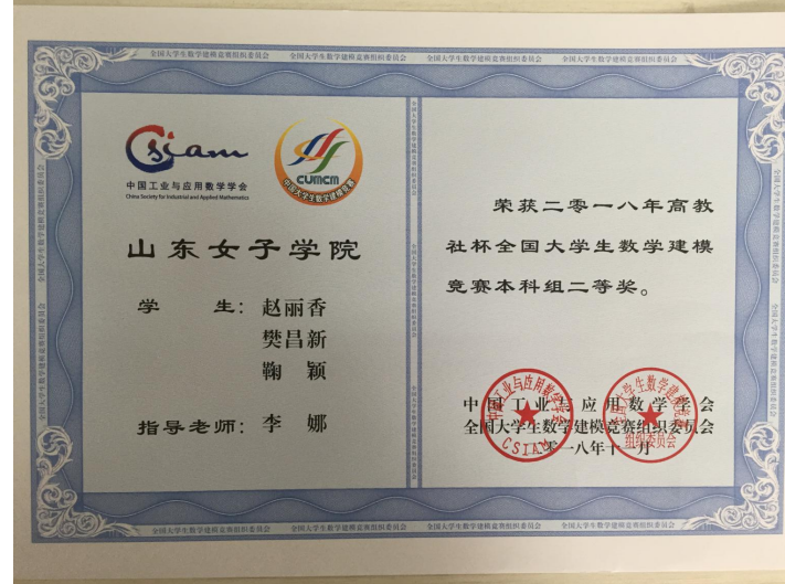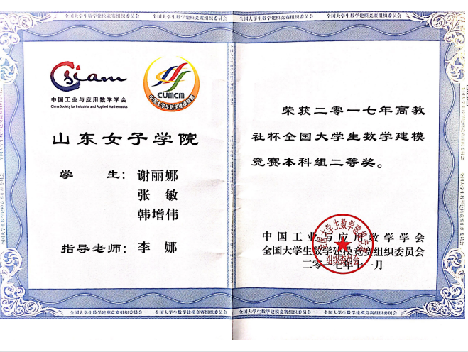 2017.11 谢丽娜 “高教社杯”全国大学生数学建模竞赛 国家二等奖