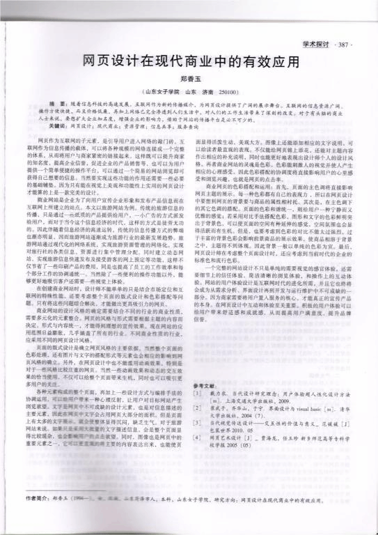 2016.04 郑香玉 网页设计在现代商业中的有效应用 中学生导报·教学研究