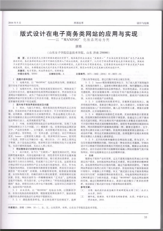 2016.05 唐雅 版式设计在电子商务类网站的应用与实现-以“MANFOO”化妆品网站为例 西部皮革